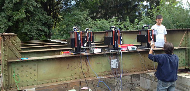 Research students are using systems identification to understand system characteristics. Through carefully examining how different parts of a system respond to forcing information can be developed on how the entire system will respond. Maximilian Billmaier is using selective sensitivity analysis to understand structural strength. He has been running experiments with a portable shaker, and collecting data on how structural systems respond when shaken. This allows him to develop a model of how the system behaves under extreme loadings and back-calculate the strength of the entire structure.